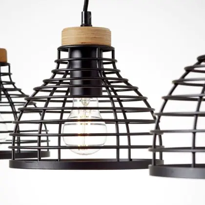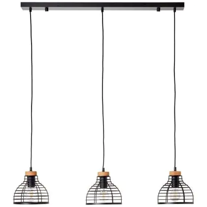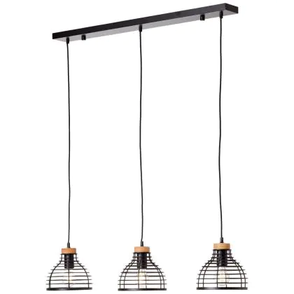 Description Brilliant Avia Suspension Luminaire Métal Bois Noir Bois | Convient pour 3x E27