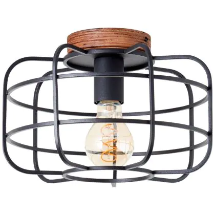 Investissez dans une solution à long terme, de heures en choisissant le Brilliant Gwen Plafonnier Métal Bois Noir | 300mm - Convient pour 1x E27.