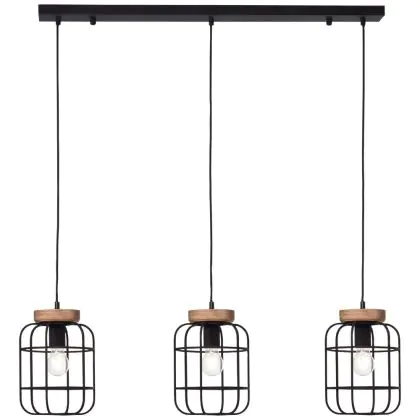 Description Brilliant Gwen Suspension Luminaire Métal Bois Noir | Convient pour 3x E27
