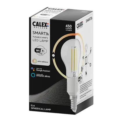 Description Calex Smart Sphérique LED ampoule E14 4,5W 450lm 1800-3000K CCT Filament | Tuya Wi-Fi