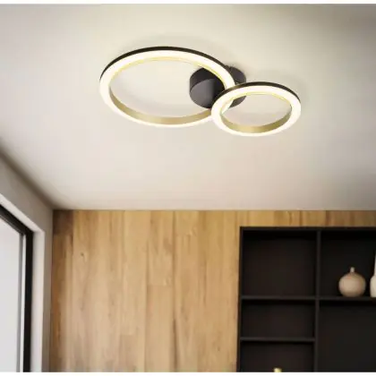 Investissez dans une solution à long terme, de 15000 heures en choisissant le Eglo Plafonnier Calliera Acier Noir, Laiton 12W 1500lm - 830 Blanc Chaud | Dimmable.