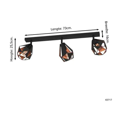 Caractéristiques du Eglo Plafonnier Carlton 7 Acier Noir Cuivre | IP20 - Convient pour 3x E27