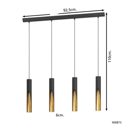 Investissez dans une solution à long terme, de 15000 heures en choisissant le Eglo Suspension Luminaire Barbotto Acier Noir, Dorée 18W 1380lm - 830 Blanc Chaud | Convient pour GU10.