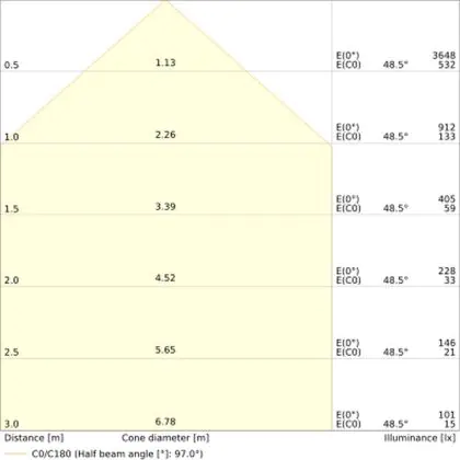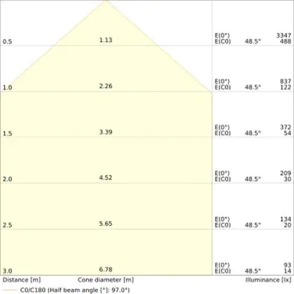 Ce downlight a un angle de 95°degrés, il peut donc être utilisé dans de nombreux environnements de travail et/ou dans les maisons.