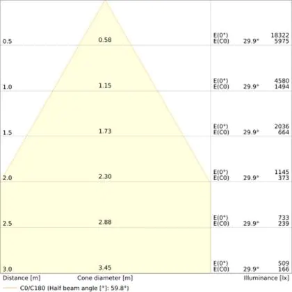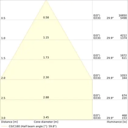 Ce downlight a un angle de 55°degrés, il peut donc être utilisé dans de nombreux environnements de travail et/ou dans les maisons.