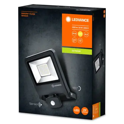 Description Ledvance Projecteur LED Endura Noir 50W 4500lm 100D - 830 Blanc Chaud | IP44 - Détecteur de mouvement et de lumière - Symétrique