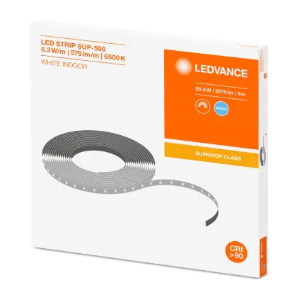 Investissez dans une solution à long terme, de 60000 heures en choisissant le Ledvance Rubans LED Superior 500 26.5W 2875lm 24v - 965 Lumière du Jour | 5M/8mm - Meilleur rendu des couleurs.