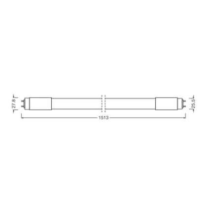 Lorsque vous optez pour la LED, il est important de tenir compte de la longueur et de la puissance de votre tube fluorescent actuel. Ce tube LED de 23 W remplace un tube fluorescent conventionnel de 58 W d’une longueur de 1513 mm. Le diamètre reste identique à celui d’un tube fluorescent T8 : 25,4 mm. Le culot est également le même : G13, avec deux broches espacées de 13 mm.