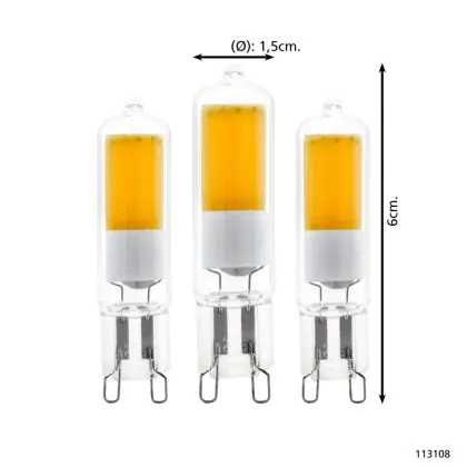 Le Lot 3x Eglo LED Capsule G9 Claire 6W 200lm - 830 Blanc Chaud | Équivalent 15W est une ampoule LED G9 efficace et le remplacement parfait de votre lampe halogène conventionnelle de 15 W avec un culot G9. Les broches sont espacées de 9 mm. De plus, le produit émet de la lumière dans la température de couleur 3000K - Blanc Chaud et se démarque grâce à sa longue durée de vie.