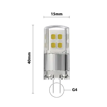 Vous allez bénéficier d'un éclairage durable par rapport à une ampoule halogène G4. Par ailleurs, les LED sont bien meilleures pour l'environnement, car elles ne contiennent pas de substances toxiques. Cependant, nous vous recommandons de comparer la taille de votre ampoule G4 actuelle avec celle de cette ampoule G4 LED. Le diamètre de ce produit est : mm et la hauteur est : 40mm. Vous saurez ainsi avec certitude si cette ampoule s'adaptera ou non à votre appareil.