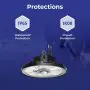 Le highbay LED, ou cloche LED, peut être utilisée à l'intérieur comme à l'extérieur grâce à leur IP élevé, résistant aux intempéries mais aussi aux chocs grâce à son IK élevé.