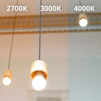 Choisissez ensuite la température de couleur extra blanc chaud : (1800 - 2700 Kelvin). Par ailleurs, le blanc chaud (3000 K) est plus adapté aux zones générales et la couleur de lumière plus naturelle qu'est le blanc froid (4000 K) est principalement utilisée pour l'éclairage fonctionnel.