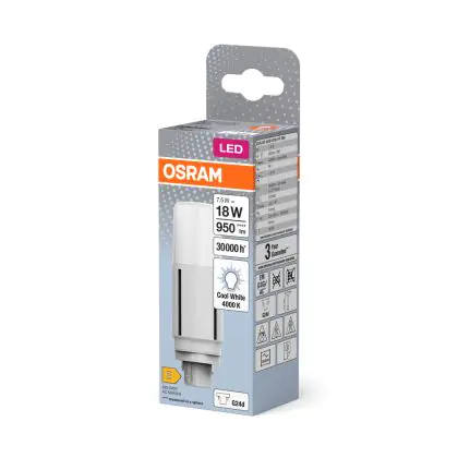 Osram Dulux-D LED 7.5W 950lm - 840 Blanc Froid | 2-Pins - Équivalent 18W est l’alternative parfaite à un PL standard de 18W ou une lampe Dulux avec 2 tiges (connecteurs). Cette ampoule LED a une durée de vie plus étendue et vous profitez de la garantie totale Lampdirect.be de 3 ans.