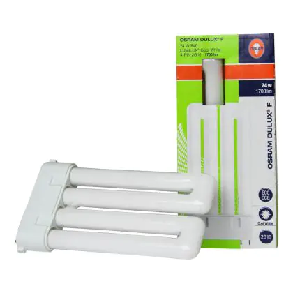 Les ampoules Osram Dulux F sont des lampes fluocompactes plates à 4 broches, constituées de 2 tubes. Elles ont été conçues pour fonctionner sur ballast électronique et conventionnel.