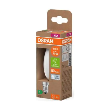 Description Osram LED Classic E14 Bougie Filament Dépolie 2.2W 470lm - 840 Blanc Froid | Équivalent 40W