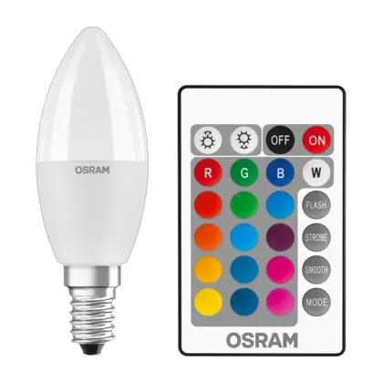 Description Osram LED E14 Bougie Dépolie 6W 470lm - 827 Blanc Très Chaud | RGBW - Dimmable - Télécommande - Équivalent 40W