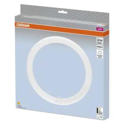 Le Osram Tube LED T9 Circulaire (EM/Direct 230V) 18.3W 2200lm - 840 Blanc Froid | Équivalent 32W de Osram est un tube LED T9 qui se distingue par son design circulaire. Il sera parfait pour être utilisé dans les environnements semi-professionnels et professionnels, comme les magasins, bureaux ou zones publiques.