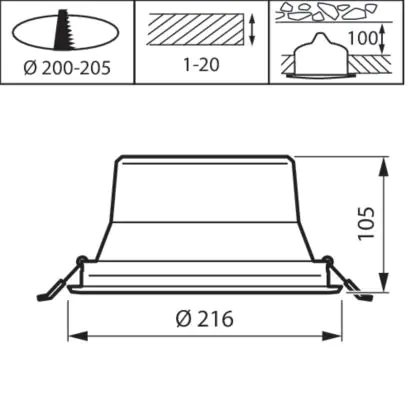 Ce downlight a un IP (Indice de protection aux intrusions de corps solides et liquides) de IP20 – Quasi-résistant à la poussière. Ainsi, le premier chiffre définit le niveau de protection contre les solides (0 = aucune protection / 6 = protection complète) et le second chiffre définit le niveau de protection contre l'intrusion d'eau (0 = aucune protection / 6 = protection contre la submersion). Votre luminaire peut êtr utilisé à l'extérieur à partir de l'IP 54.