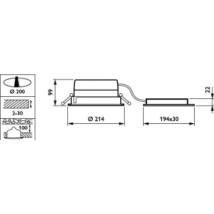Description Philips Downlight LED LuxSpace Compact bas DN570B 16.5W 2200lm 80D - 830 Blanc Chaud | 214mm - Dimmable - Aluminium Réflecteur - Power Over Ethernet