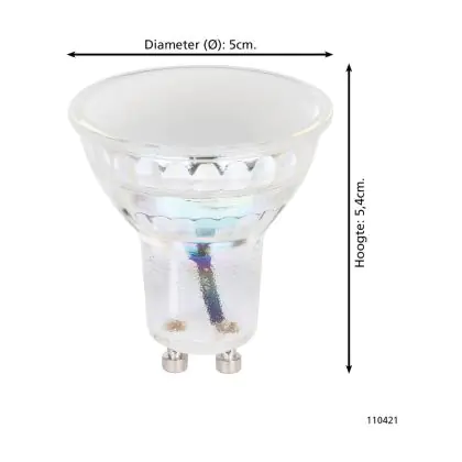 Er zijn tal van goede redenen om de overstap naar GU10 LED te maken. Niet alleen is dit product duurzamer en milieuvriendelijker dan conventionele halogeenspots, maar ook stukken energiezuiniger. Dat kun je zien aan het vermogen van 4.9 Watt. Dat is veel minder dan 25 Watt van de conventionele tegenhanger. Je gaat dus fors besparen aan energiekosten! Hou er verder rekening mee dat het licht van dit GU10 LED lampje iets feller is dan je voorheen wellicht gewend bent. De lichtopbrengst van dit product is: 345 lumen