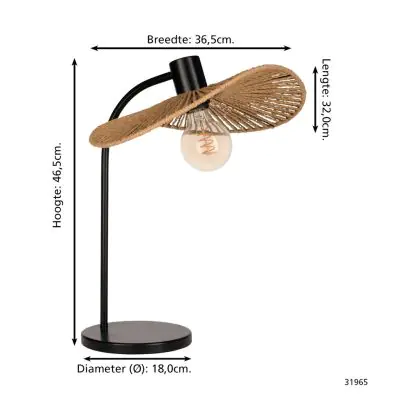 Beschrijving Eglo Tafellamp Siruela Staal Zwart | IP20 - Geschikt voor 1x E27