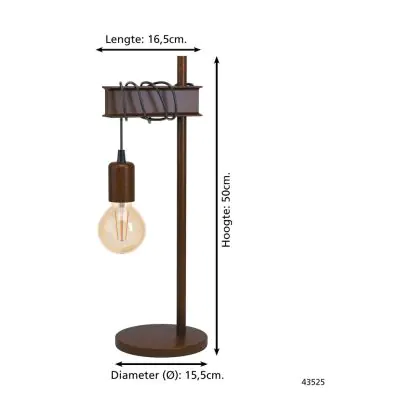 Beschrijving Eglo Tafellamp Townshend 4 Staal Bruin Zwart | IP20 - Geschikt voor 1x E27