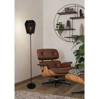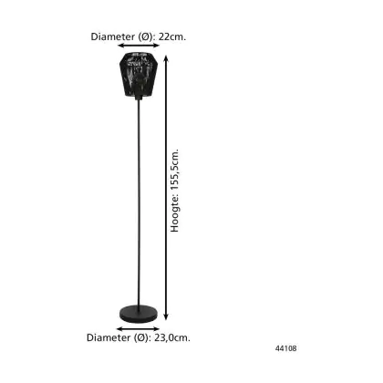Beschrijving Eglo Vloerlamp Persley Staal Zwart Papier | IP20 - Geschikt voor 1x E27