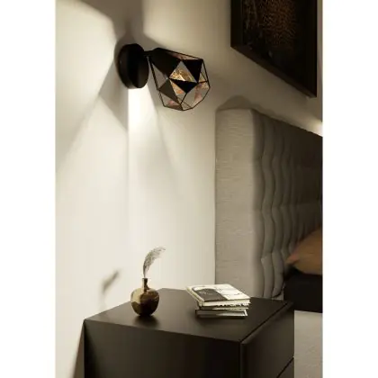 Beschrijving Eglo Wandlamp Carlton 7 Staal Zwart Koper | IP20 - Geschikt voor 1x E27