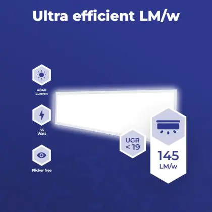 Met de aanschaf van dit LED paneel van 120x30cm maak je in meerdere opzichten een goede keuze. Met een gemiddelde levensduur van 50000 uur ben je verzekerd van een duurzaam product, dat vele jaren optimaal blijft presteren. Bovendien draag je een steentje bij aan een schoner milieu, want LED verlichting vermindert de C02 uitstoot en bevat geen giftige stoffen zoals kwik.
