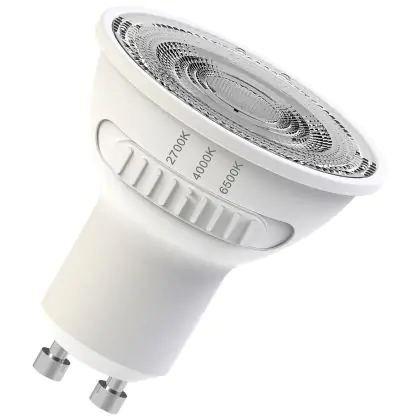 De kleurtemperatuur van deze GU10 LED spot is: 2700K - 4000K - 6500K CCT.