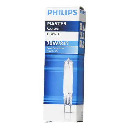 De Philips CDM TC lampen bevatten een UV filter, waardoor weinig verkleuring van de objecten optreedt. De Philips CDM-TC 70W 842 G8.5 (MASTERColour) gasontladingslamp heeft een eenvoudige lampvoet, namelijk de G8.5. De lampen zijn niet dimbaar.